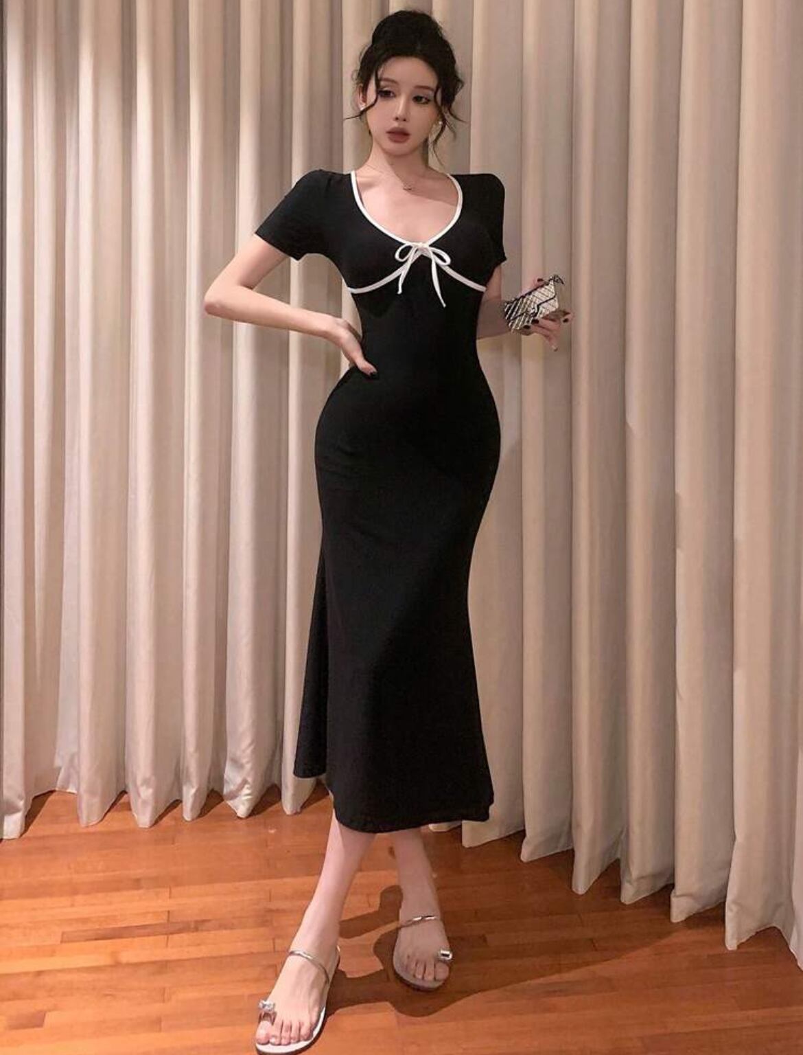バイカラーリボンワンピース